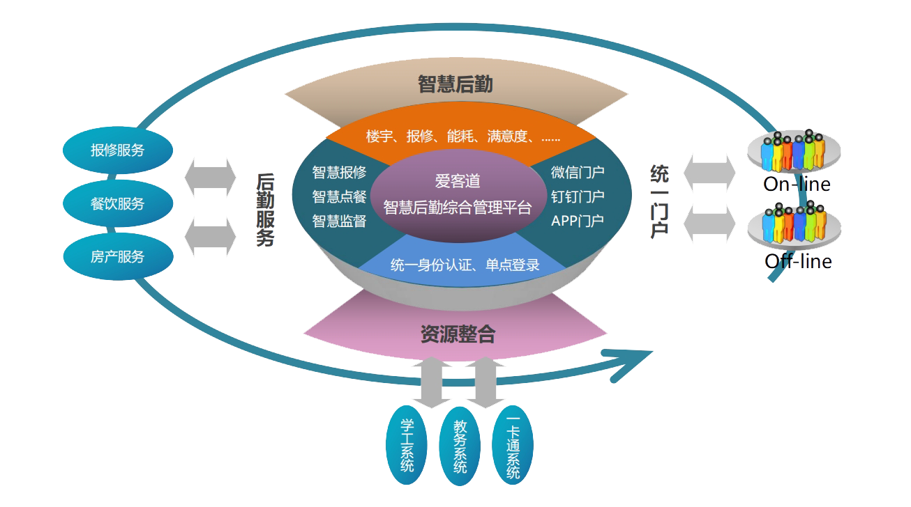 基于物聯(lián)網(wǎng)、大數(shù)據(jù)、數(shù)字孿生等技術(shù),通過整合后勤相關(guān)的人、財、物,及相關(guān)的制度、流程、事件,建立集統(tǒng)一調(diào)度、統(tǒng)一管控、統(tǒng)一數(shù)據(jù)和統(tǒng)一運(yùn)維的一體化智慧后勤,為高校、醫(yī)院等群體提供辦公、會議、任務(wù)、房產(chǎn)、設(shè)備、資產(chǎn)、耗材、巡檢、保養(yǎng)、保潔、能耗、餐飲、滿意度、投訴等后勤服務(wù),保障運(yùn)行安全,提高工作效率,提升服務(wù)感受,降低運(yùn)營成本,突顯后勤管理價值。